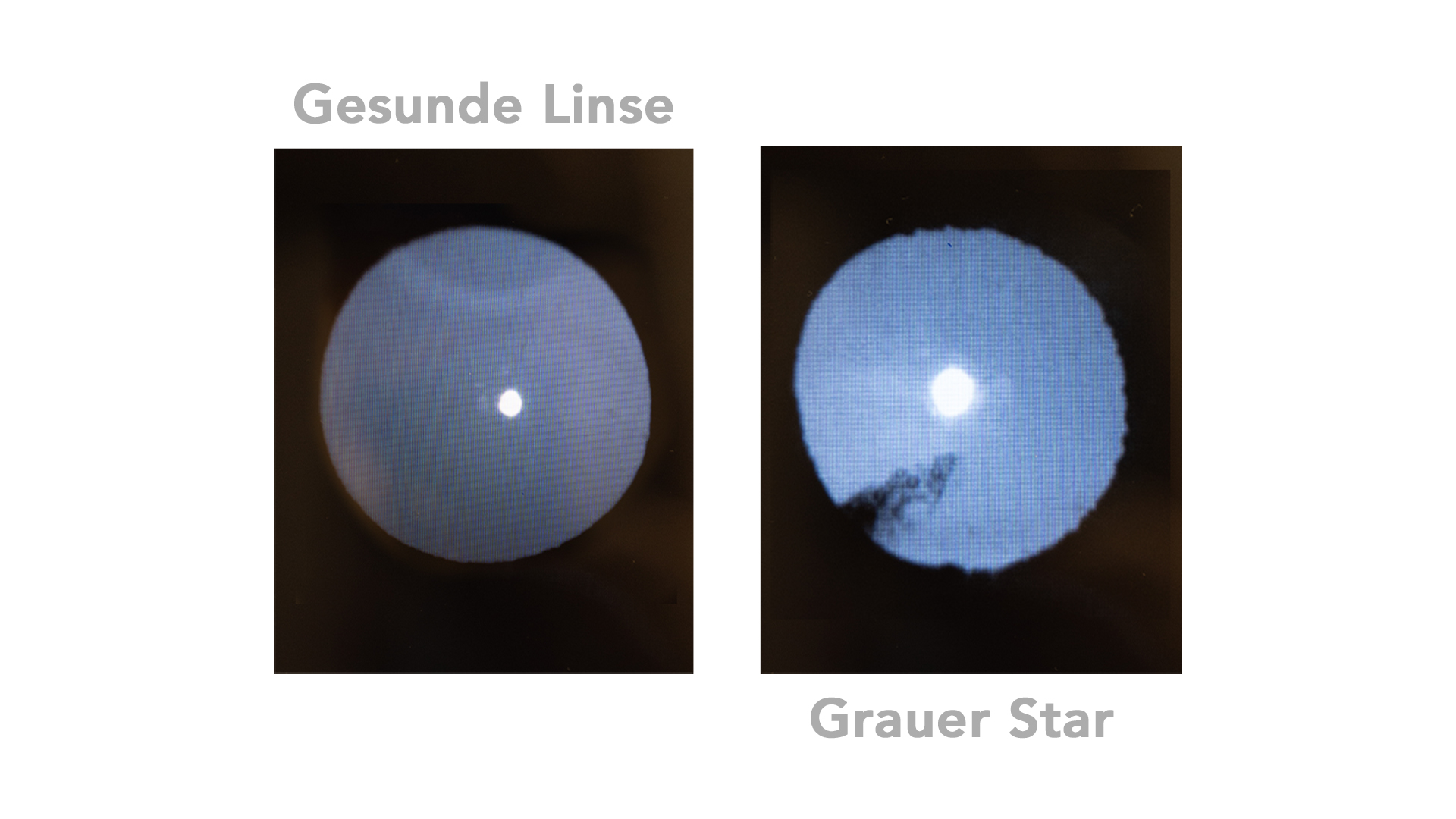 Das Resultat: Eine Verhärtung der Augenlinse durch Einlagerung von unlöslichen Proteinen, eine Verdichtung der Linsenfasern und die Trübung des Linsenkerns.